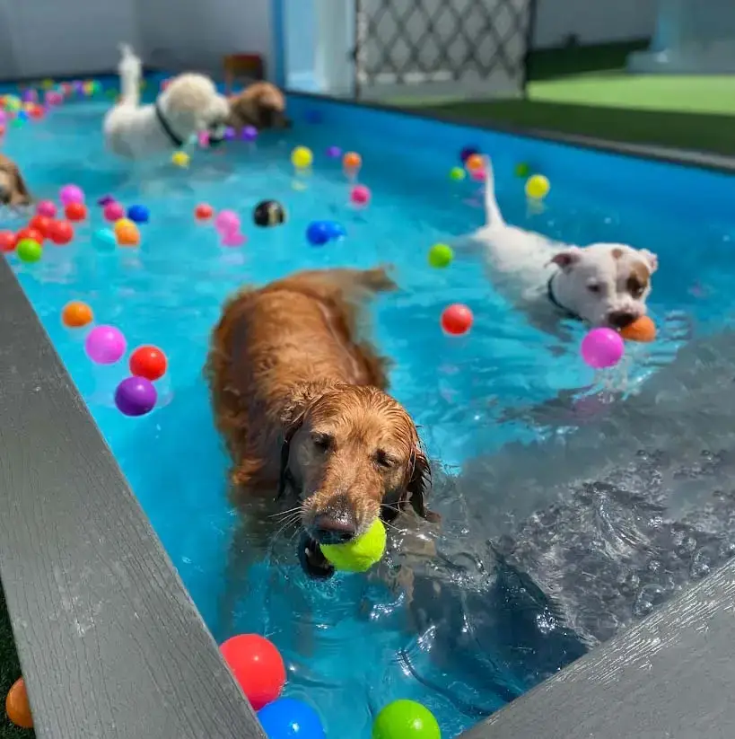 Your dog is about to experience 20,000 square feet of freedom. 4 indoor and 2 outdoor parks. A 20 foot pool. Pack play with friends.